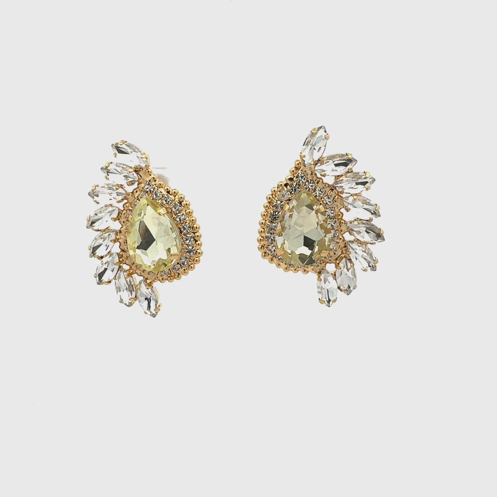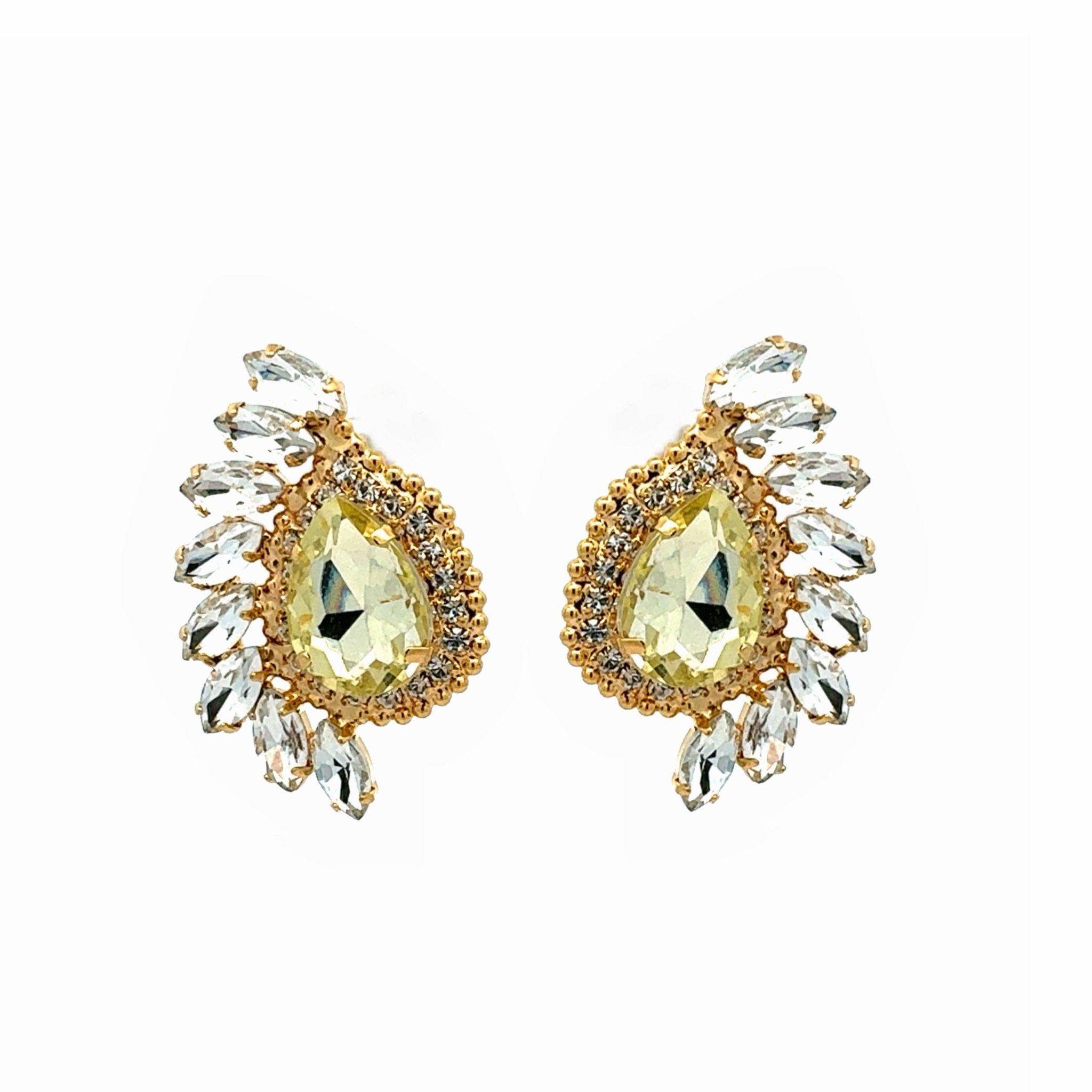 Los Pendientes Aurora Dorada combinan la elegancia del dorado con el brillo del cristal amarillo claro en un diseño inspirado en la luz del amanecer. Su piedra central en forma de lágrima está rodeada por un halo de circonitas blancas y una delicada composición de cristales tipo hoja que aportan luminosidad y movimiento.