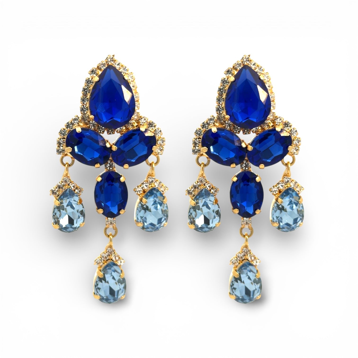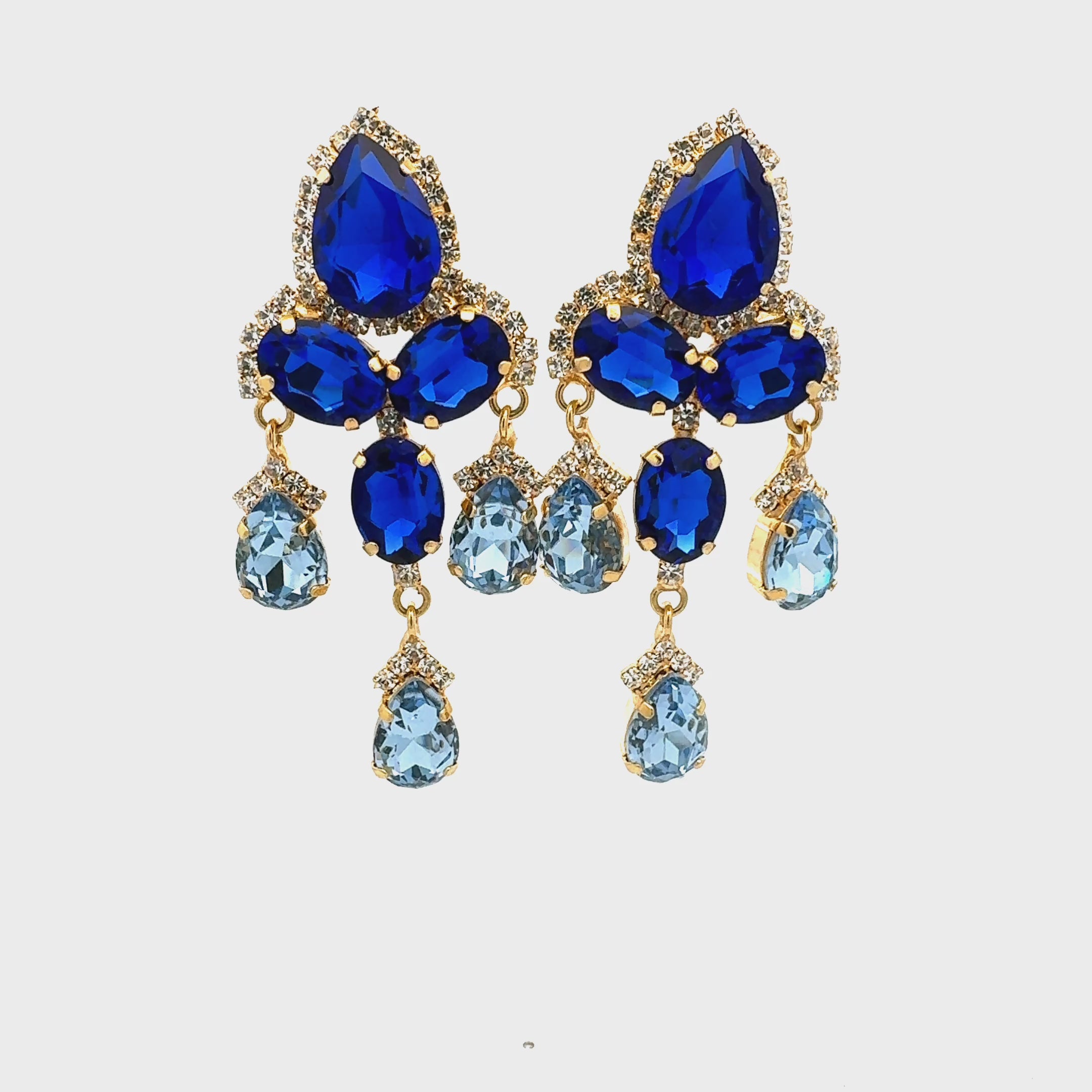Estos pendientes estilo chandelier ofrecen una hermosa mezcla de cristales en topacio, zafiro y zafiro claro. Cada cristal cuelga de manera delicada, capturando la luz y creando un brillo cautivador. El diseño chandelier agrega sofisticación y glamour, perfecto para ocasiones especiales. Los colores vibrantes del topacio y el zafiro se combinan a la perfección, creando un accesorio distintivo que realza cualquier atuendo con su lujo y elegancia.