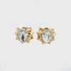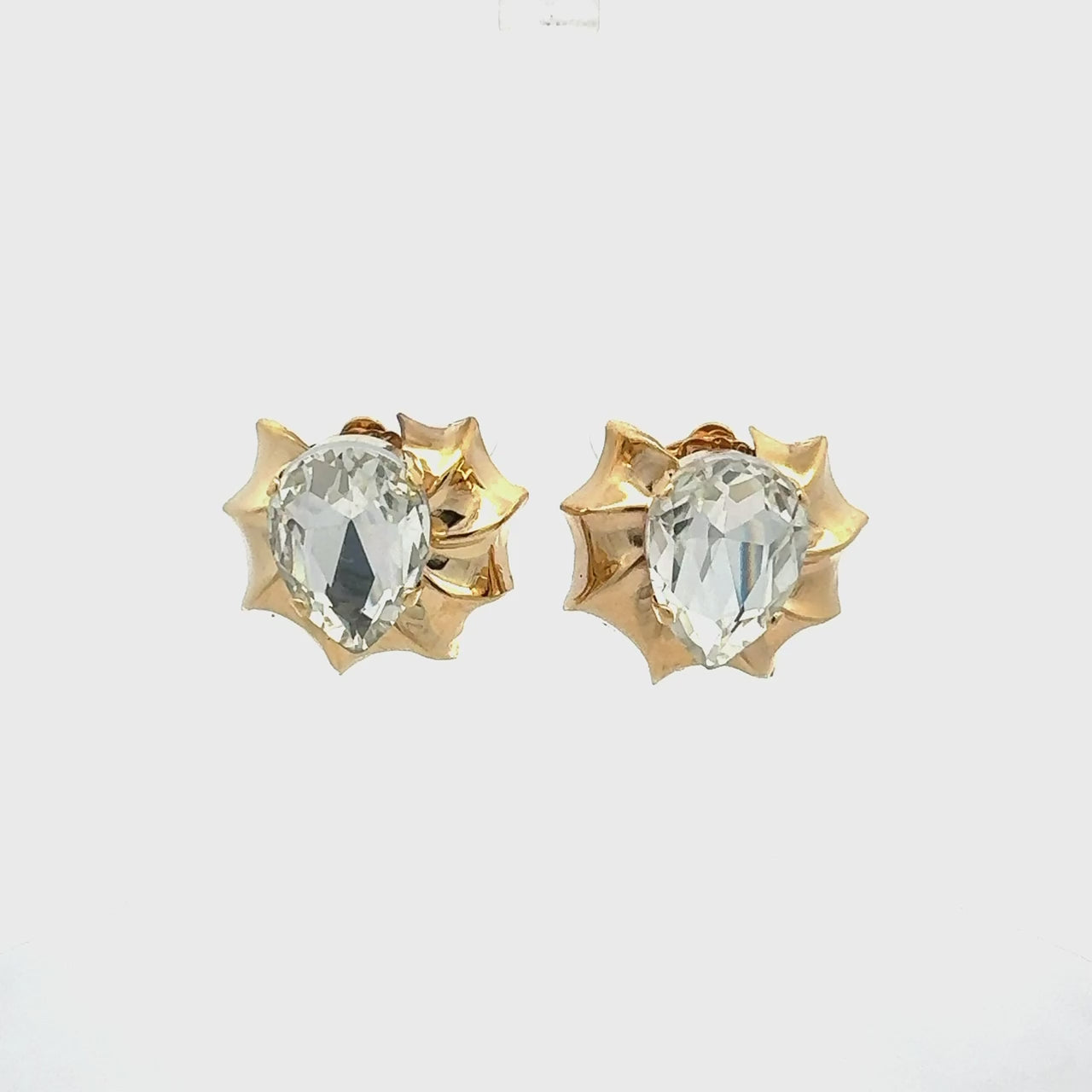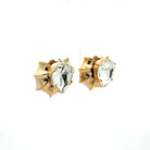 Estos pendientes de botón combinan un cristal central en forma de gota con una base dorada de inspiración solar, creando un diseño elegante y luminoso. Su silueta compacta aporta brillo sin excesos, convirtiéndolos en una pieza versátil y sofisticada, ideal tanto para el día como para la noche.