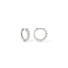 Aros en plata de ley 925 rodiado, decorados con circonitas corte baguette engastadas en línea frontal. Diseño estructurado que combina la solidez del aro clásico con el brillo geométrico de las piedras rectangulares. Cierre tipo clic seguro y cómodo para uso diario. Tamaño versátil, ideal para llevar solos o combinados en un ear stack. Acabado pulido de alto brillo.