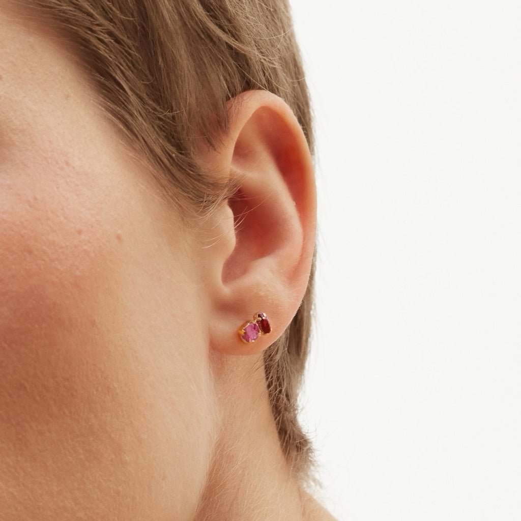 Estos pendientes cuentan con dos cristales, uno rosa y otro burdeos, creando una combinación armoniosa y refrescante. Este diseño simple pero impactante es ideal para añadir un toque de color a cualquier conjunto. Fabricados con cuidado en plata de ley, estos pendientes aseguran durabilidad y elegancia duradera. Perfectos para cualquier ocasión, desde reuniones informales hasta eventos más formales, estos pendientes destacarán con su estilo versátil y sofisticado.