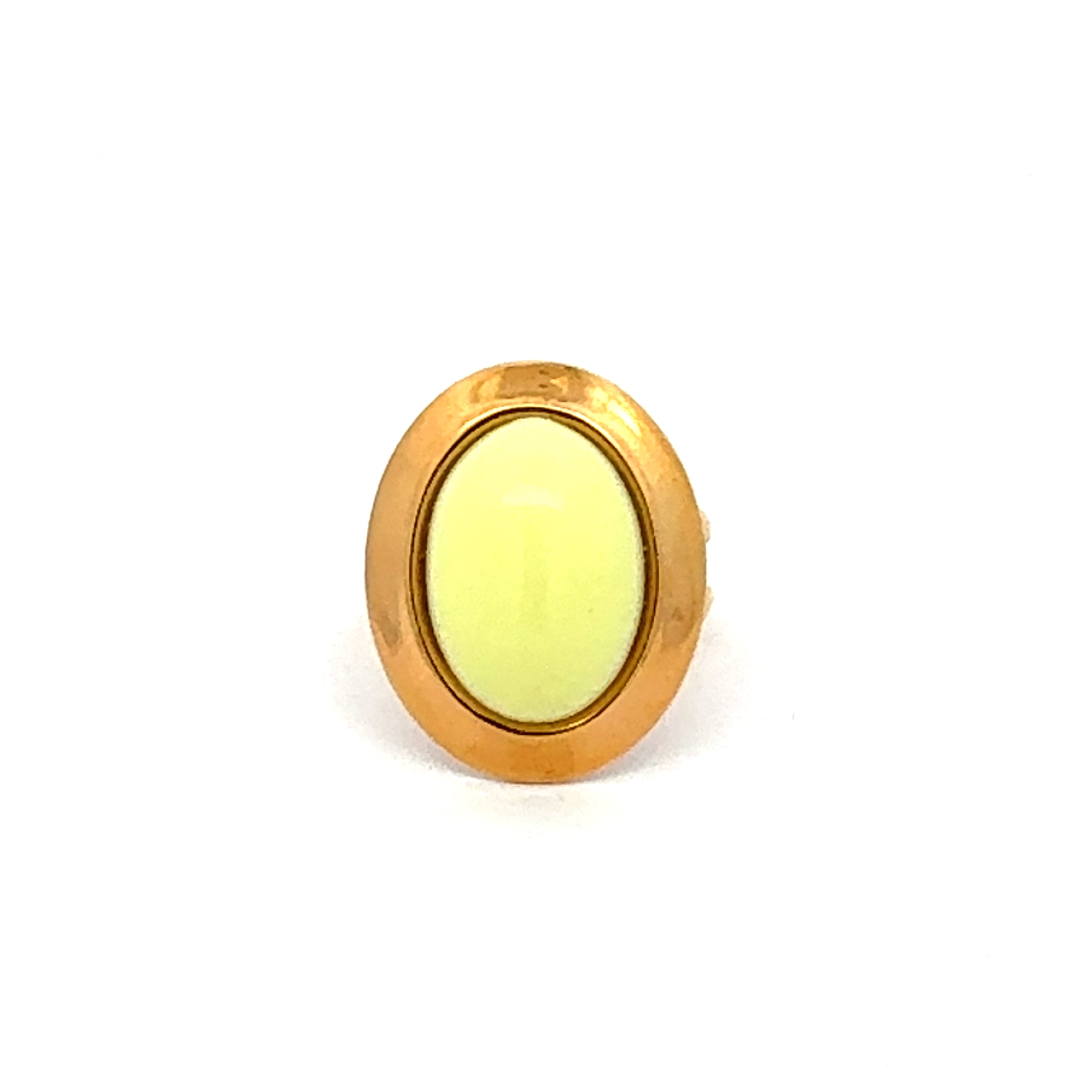 Radiante y delicada, esta sortija ajustable con piedra ovalada en color amarillo claro es una joya que irradia luz, alegría y frescura. Inspirada en diseños vintage, su acabado dorado resalta la suavidad del tono, creando una pieza sutil pero llena de personalidad con un aire bohemio y sofisticado.