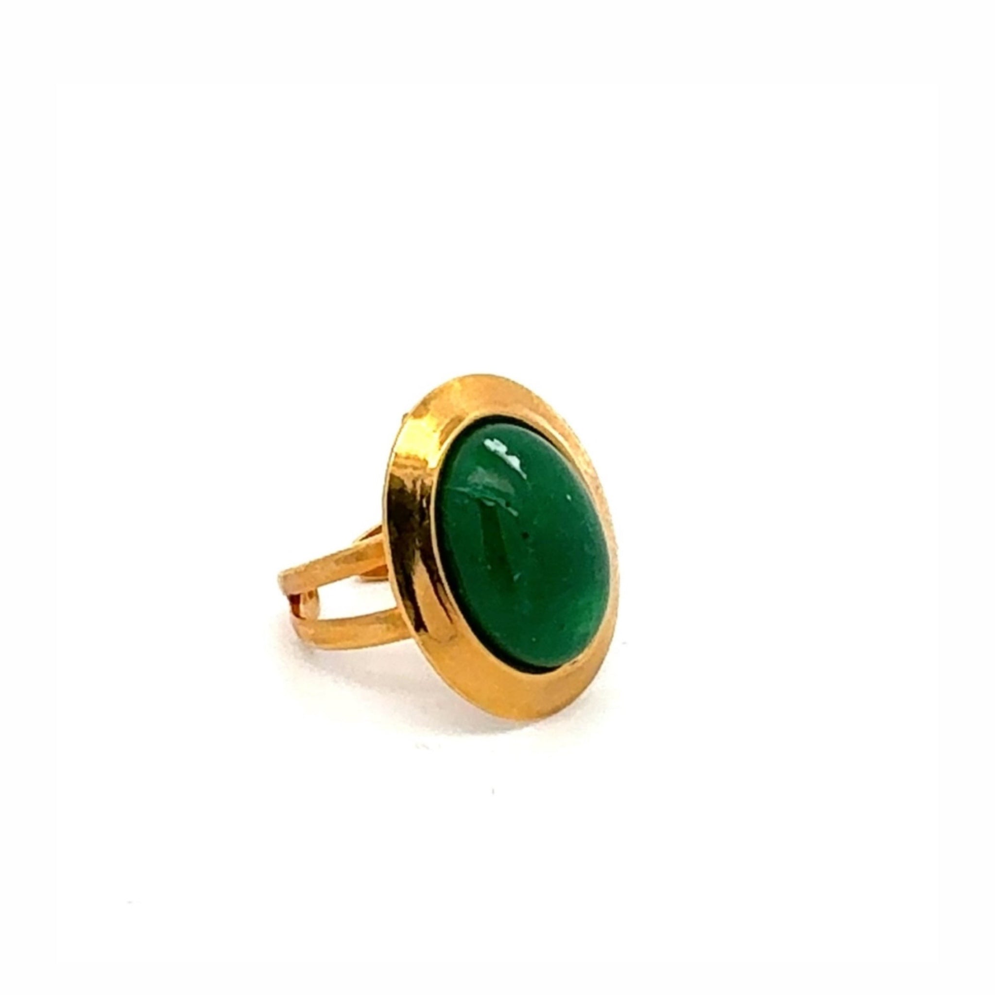 Despierta el encanto de épocas pasadas con esta sortija de estilo vintage, protagonizada por una piedra ovalada en imitación de malaquita que cautiva con su intenso color verde. Su diseño sobrio y elegante, enmarcado en un tono dorado cálido, evoca el glamour clásico con un toque moderno. Ajustable y cómoda, esta pieza es perfecta para añadir carácter y sofisticación a cualquier look. Llévala para expresar tu estilo único y dejarte envolver por la magia de una elegancia atemporal.