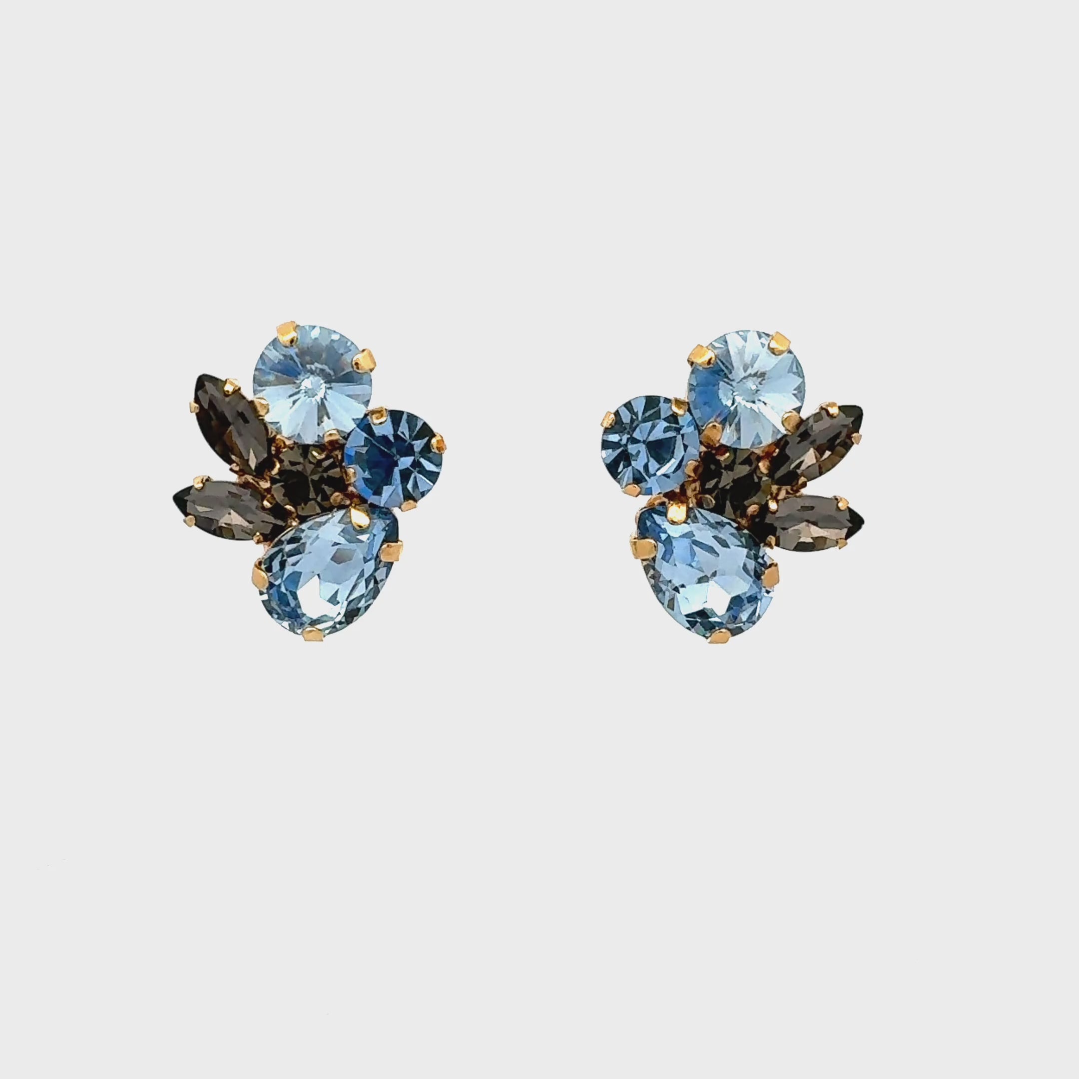 Piedras: Cristales de Swarovski Preciosa en tonos azul claro, azul profundo y gris ahumado