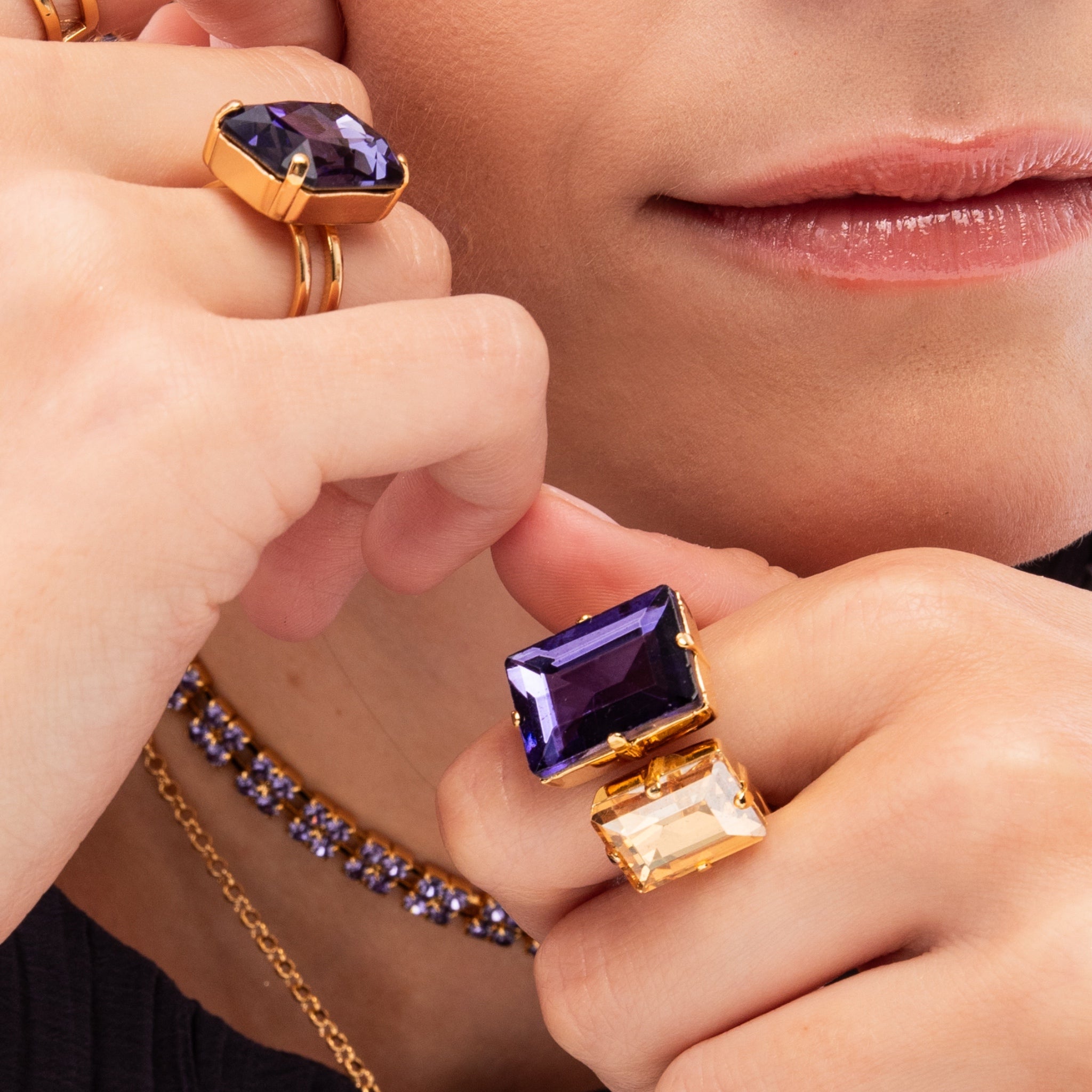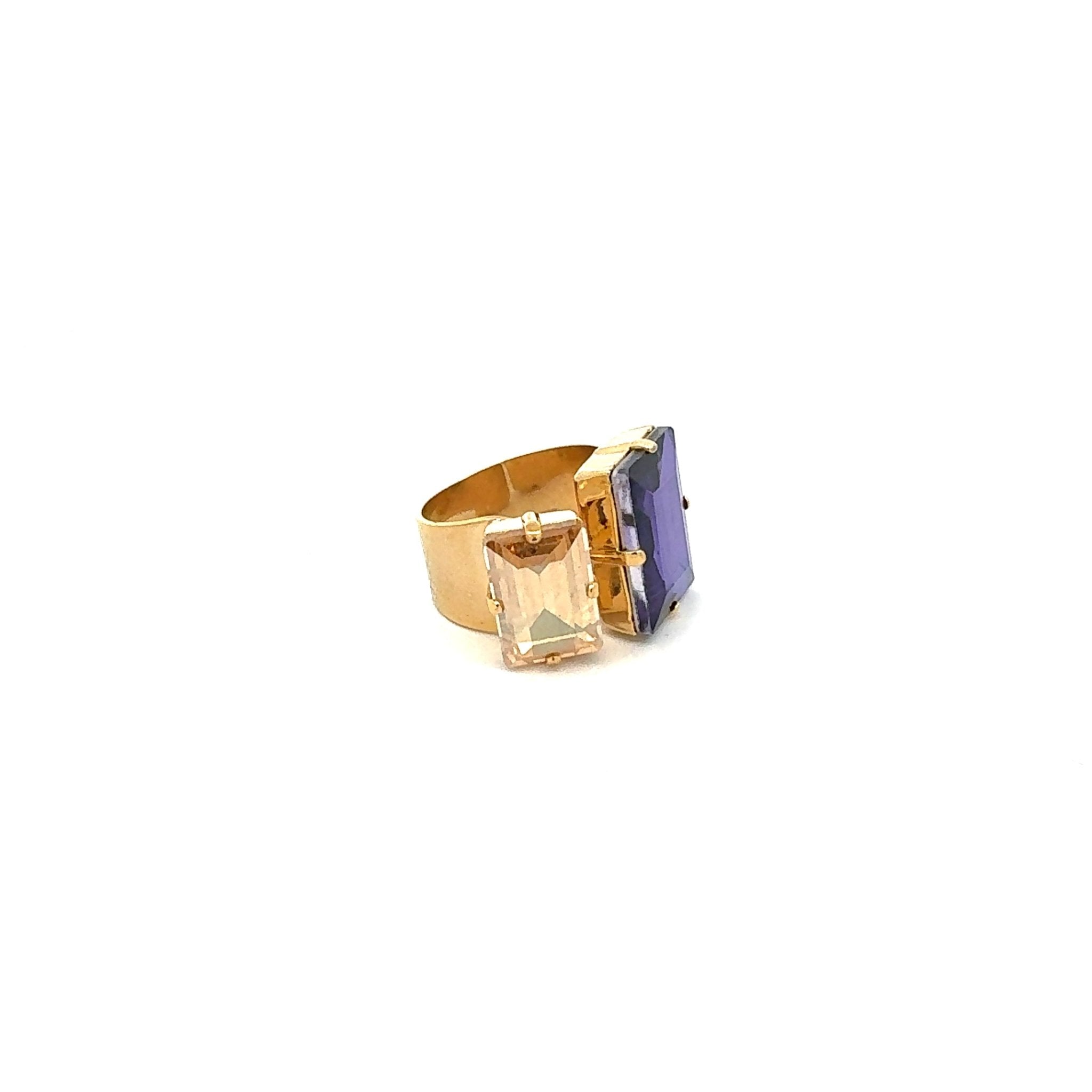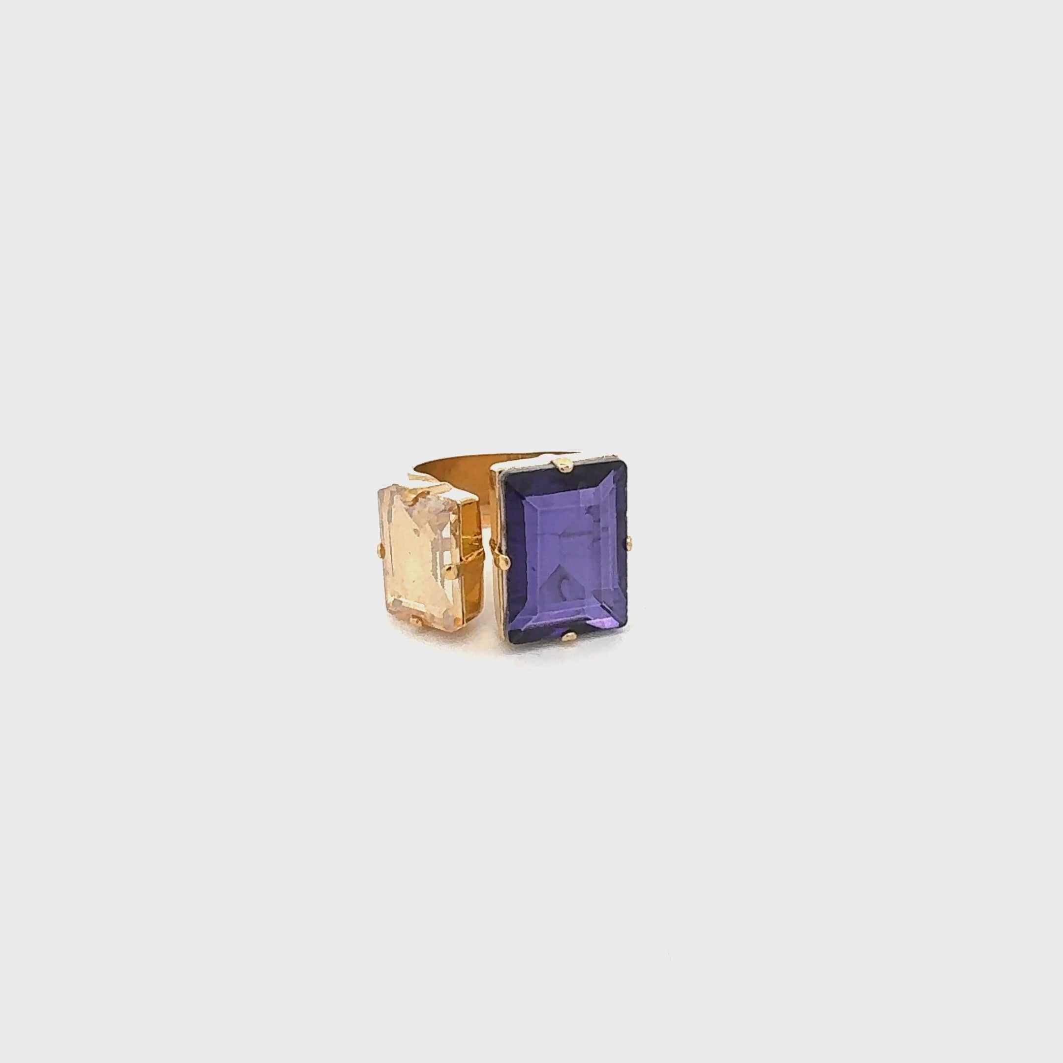 Sortija Dos Rectángulos Tanzanita y Cuarzo Dorado