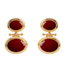 Añade un toque de distinción a tu estilo con estos elegantes gemelos de diseño ovalado. Están elaborados en metal dorado y engastados con piedra color burdeos, que aporta intensidad y un aire sofisticado. Este tono profundo y elegante simboliza pasión, fuerza y confianza, convirtiéndolo en una elección audaz y refinada. Su sistema de cierre tradicional garantiza un ajuste cómodo y seguro, ideal para ocasiones formales o para destacar cualquier look con un detalle lleno de carácter.