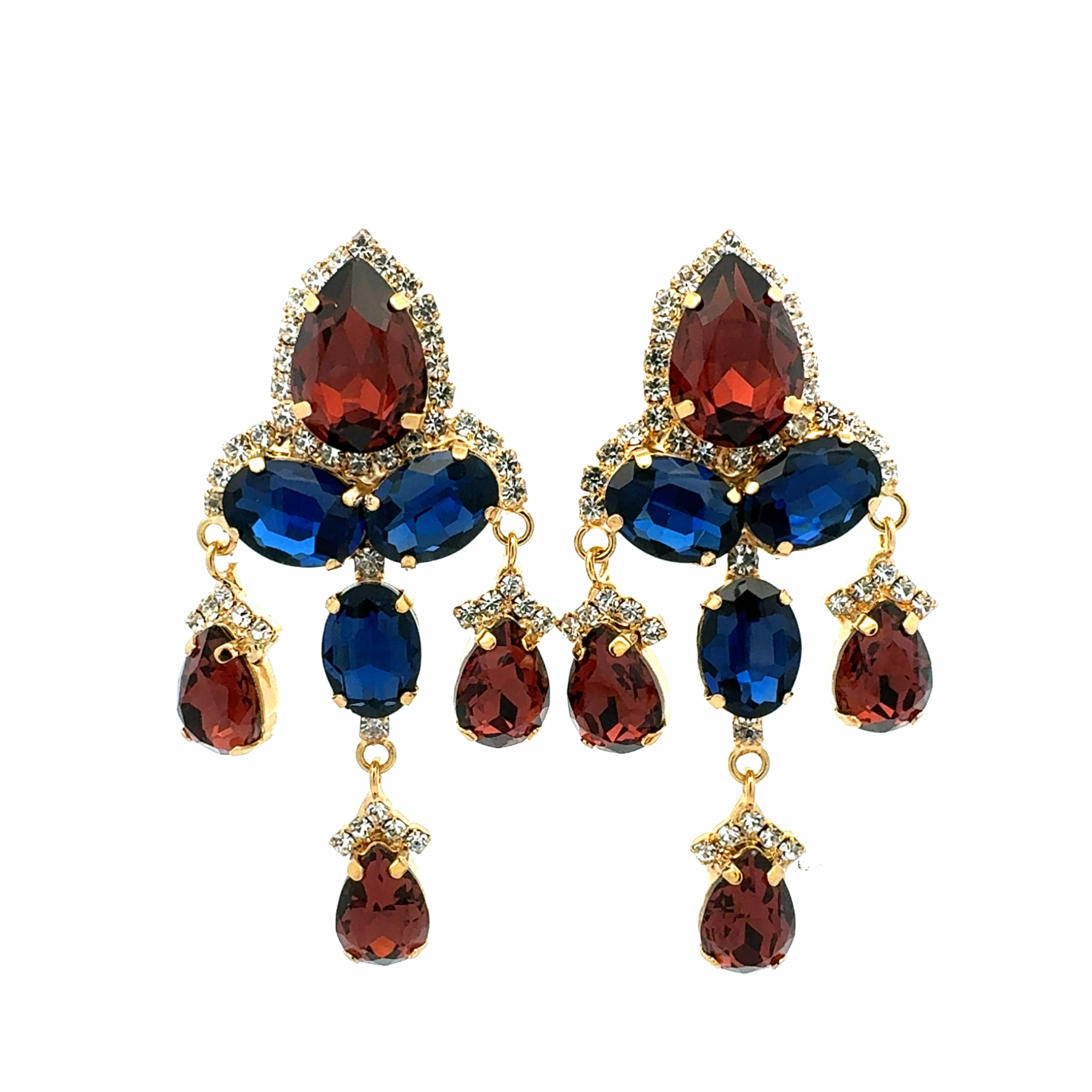 Pendientes Chandelier Zafiro y Burdeos