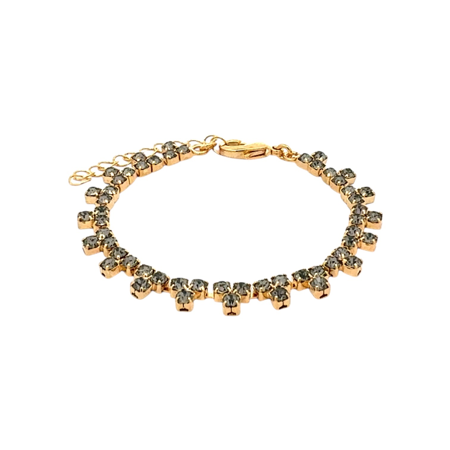 Experimenta la elegancia de una pulsera que combina formas geométricas audaces con la calidez del diamante negro. Cada triángulo ha sido cuidadosamente tallado para reflejar la luz de manera hipnotizante, mientras que los acentos dorados aportan un toque de refinamiento sin pretensiones. Versátil y cómoda, se ajusta a tu muñeca con precisión para brillar tanto en contextos profesionales como en momentos especiales. Una joya que eleva tu estilo personal con ese equilibrio inconfundible entre accesibilidad y distinción auténtica.