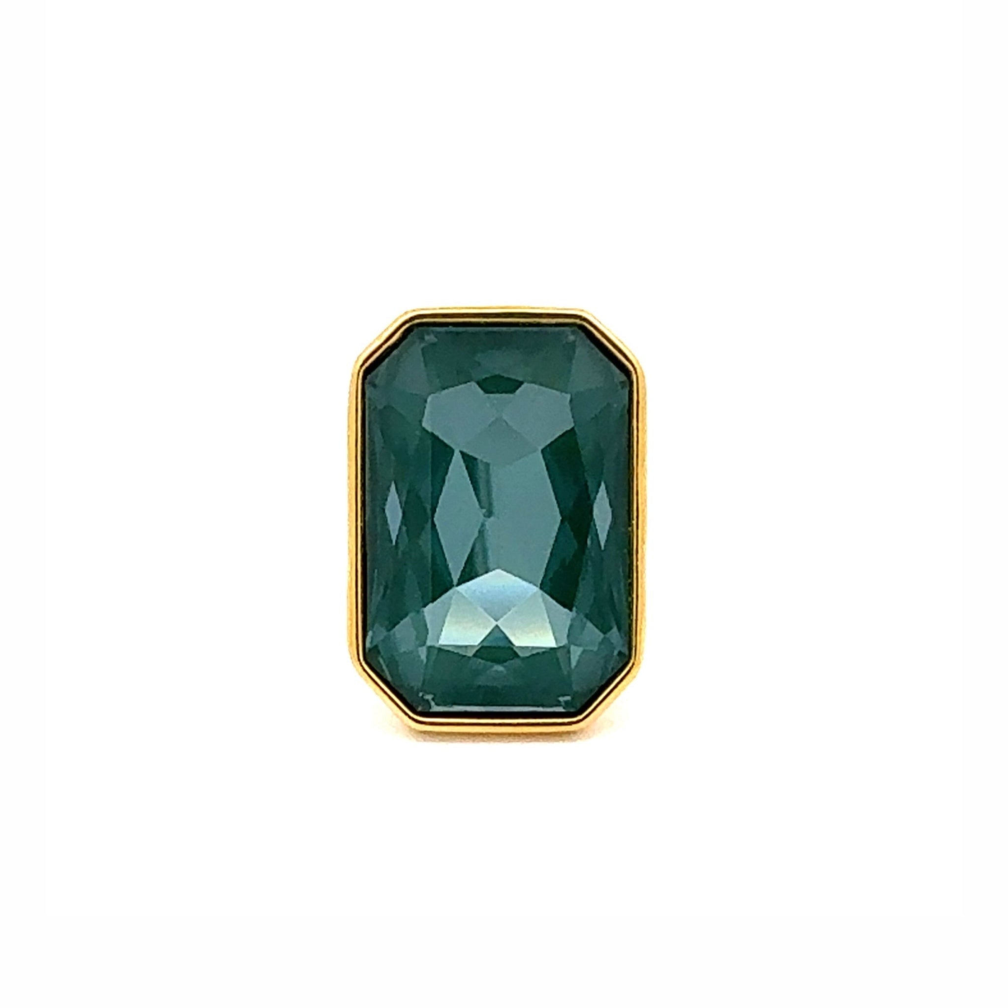 Sortija rectangular con cristal Swarovski® en tono verde bosque y acabado dorado. El corte facetado de la piedra crea un juego de reflejos que atrapa la luz desde todos los ángulos, convirtiéndola en una pieza sofisticada y con presencia. Hecha a mano en España de forma sostenible y con materiales premium, esta joya combina diseño contemporáneo con artesanía tradicional. Ideal para quienes buscan un anillo audaz, elegante y con conciencia.