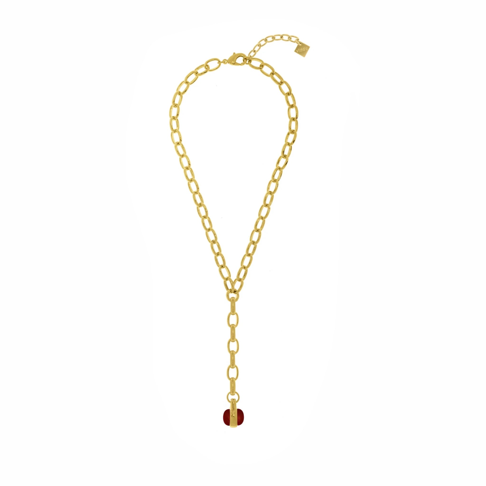 Este collar con ágata roja natural combina la elegancia del dorado con la energía espiritual de esta piedra semipreciosa. La ágata roja es una piedra de arraigo que ofrece estabilidad y fortaleza, conocida como la piedra de la fuerza. Su tono rojo vibrante energiza tanto el cuerpo como la mente, aportando vitalidad y confianza a quien la lleva. Su diseño moderno con cadena de eslabones gruesos lo convierte en una pieza versátil y sofisticada, ideal para elevar cualquier look con un toque de equilibrio, estilo y energía positiva.