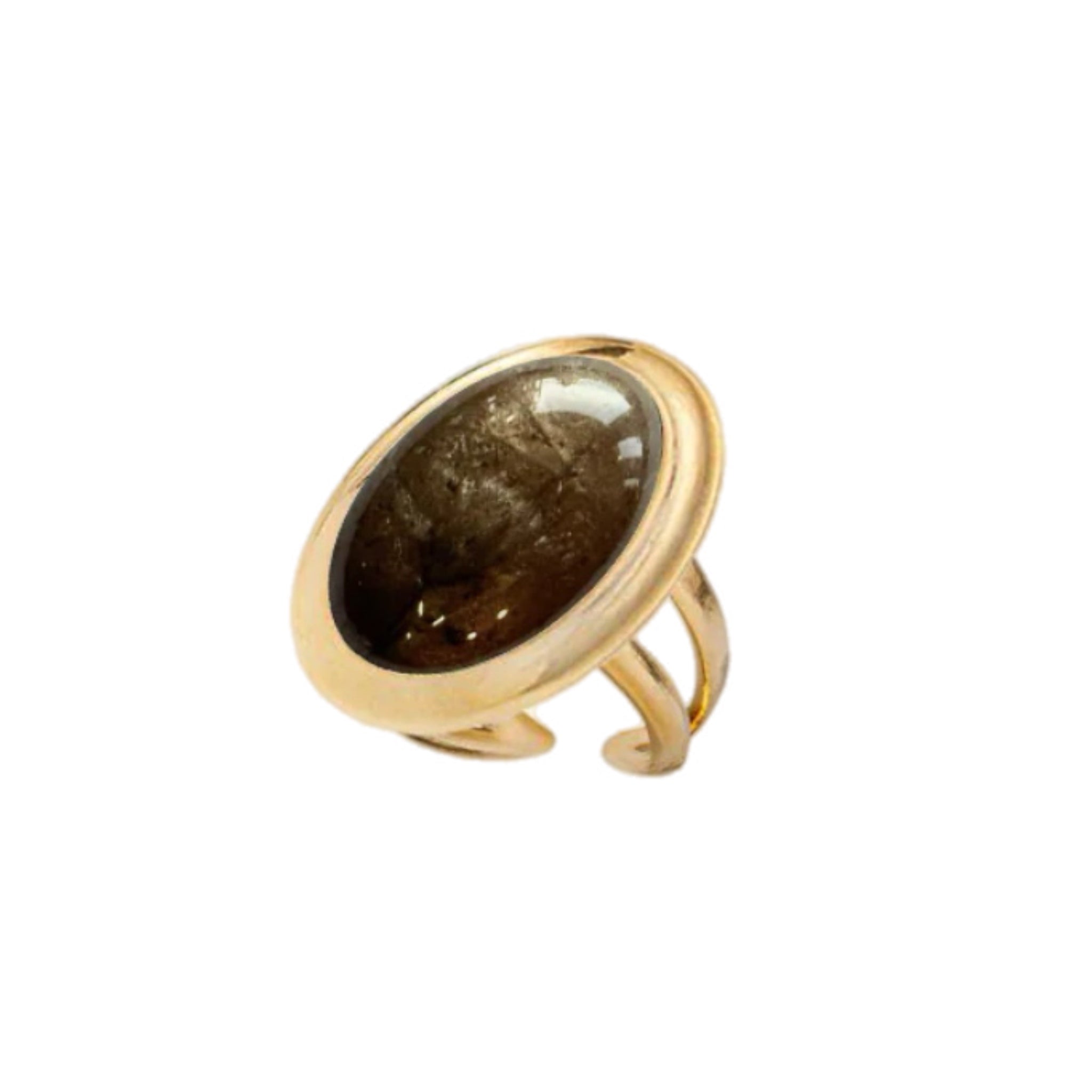 Sutil y con carácter, esta sortija ajustable con piedra ovalada en color verde olivo es una joya que evoca equilibrio, conexión con la naturaleza y elegancia serena. Inspirada en diseños vintage, su acabado dorado complementa a la perfección el tono terroso de la piedra, dando como resultado una pieza con estilo bohemio y atemporal.